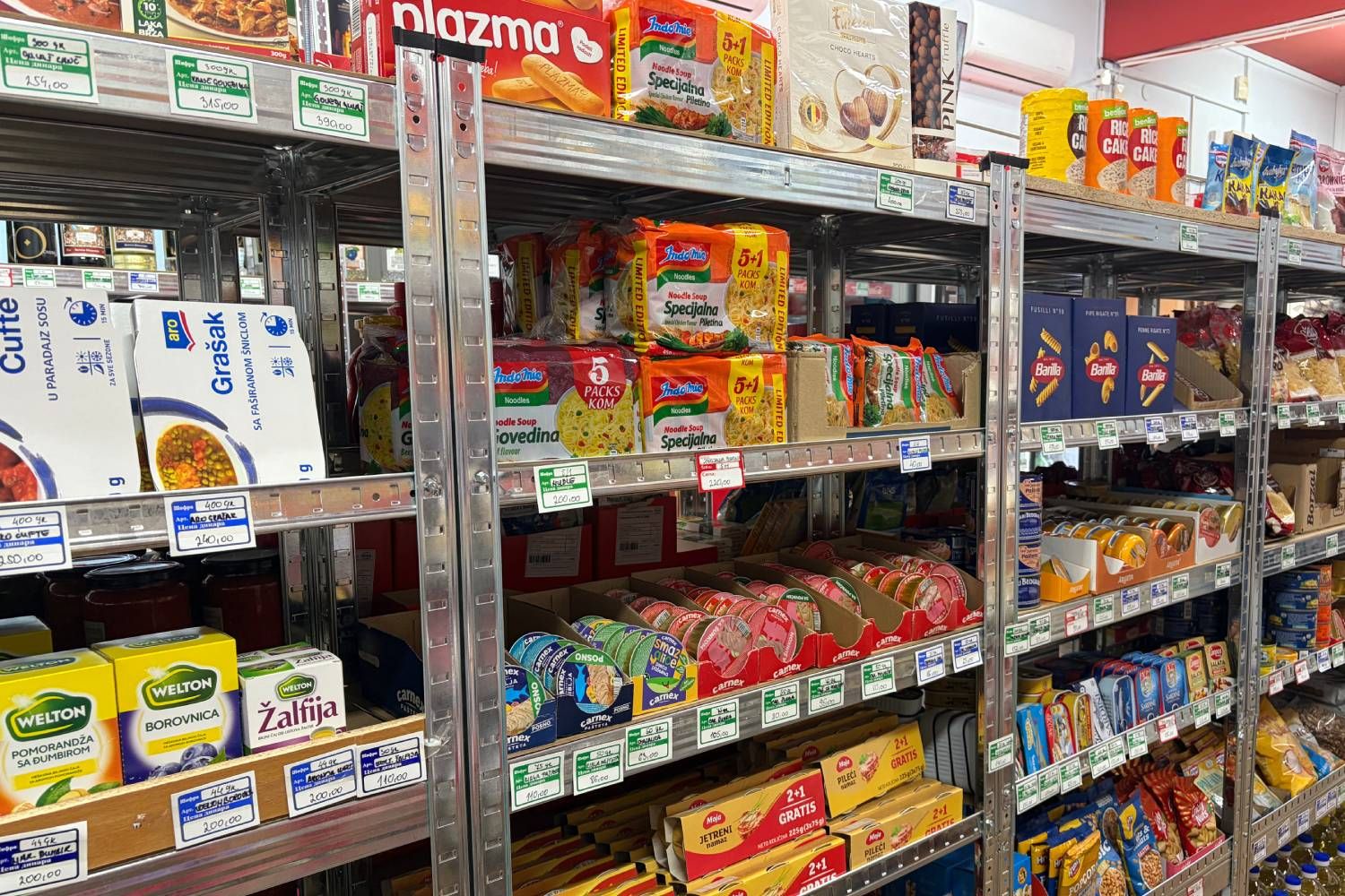 U ponudi vas očekuje širok izbor proizvoda za svaki dan: sveži mlečni proizvodi, hleb, zamrznuti program, kao i omiljeni slatkiši i grickalice za svaku priliku. Tu su i osnovne kuhinjske namirnice poput pirinča, griza, testenina i začina – sve što je potrebno za pripremu ukusnih obroka.