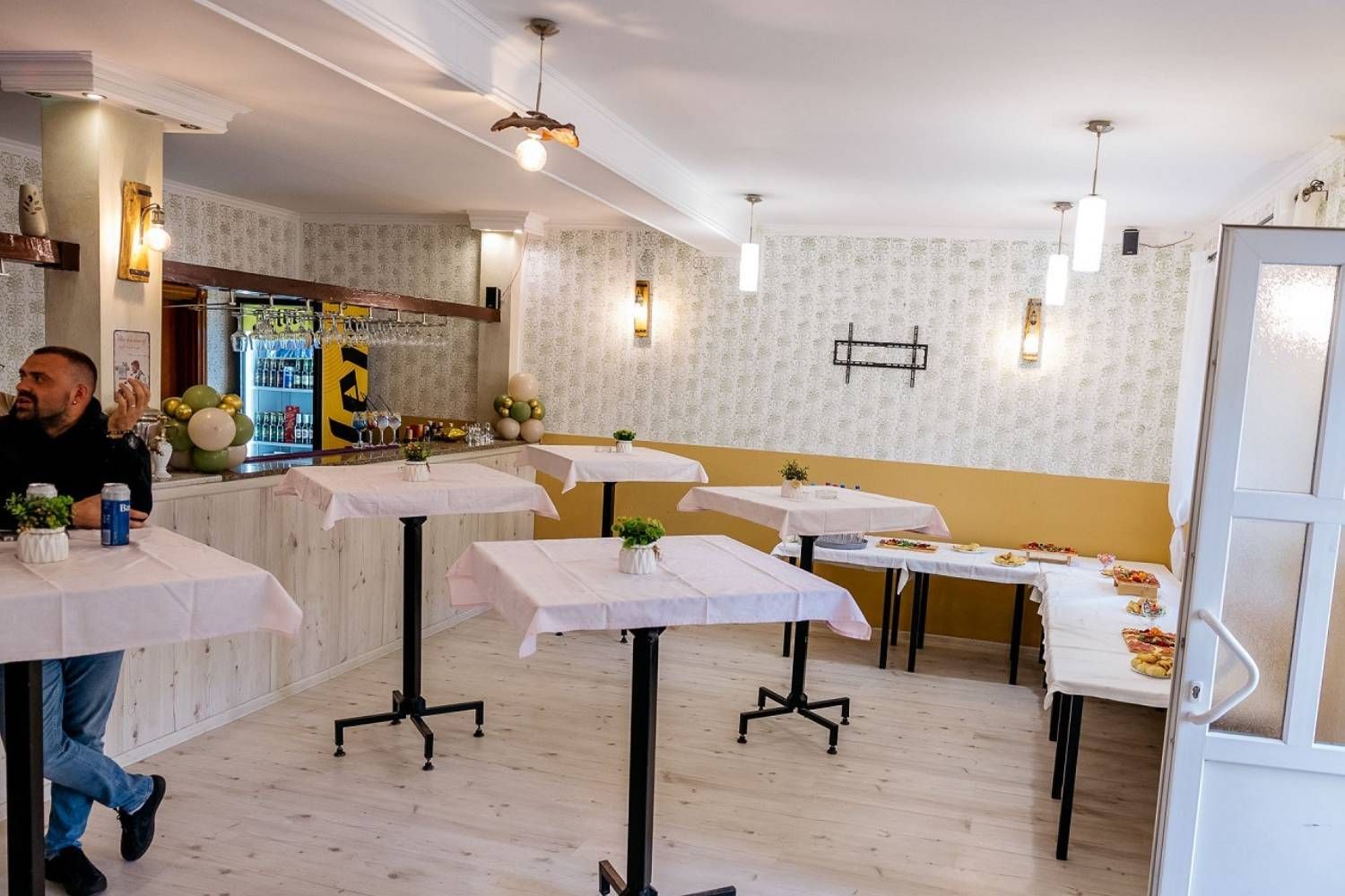 Ambijent restorana "Stari grad" odiše etno i starogradskim šarmom, spoj topline i tradicije, sa letnjom baštom i zimskom salom za 30 do 40 osoba. Restoran ima dve sale, malu i veliku, koje se po potrebi mogu odvojiti kliznim vratima, idealno za privatne proslave, rođendane, krštenja, poslovne ručkove ili daće, sve u dogovoru sa osobljem restorana.